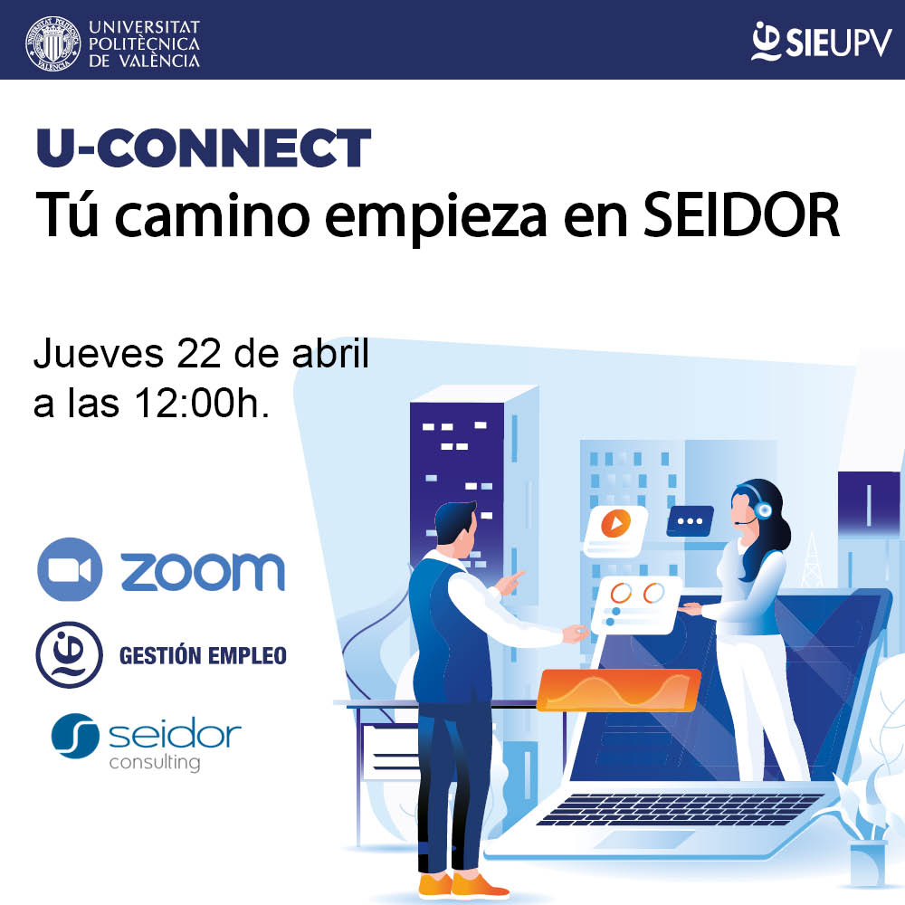 El próximo jueves, 22 de abril, a las 12h, el SIE (www.sie.upv.es) ha organizado un evento virtual U-connect con la empresa SEIDOR, multinacional tecnológica que ofrece un amplio abanico de soluciones y servicios de consultoría a las empresas, con presencia en 38 países , en cinco continentes.