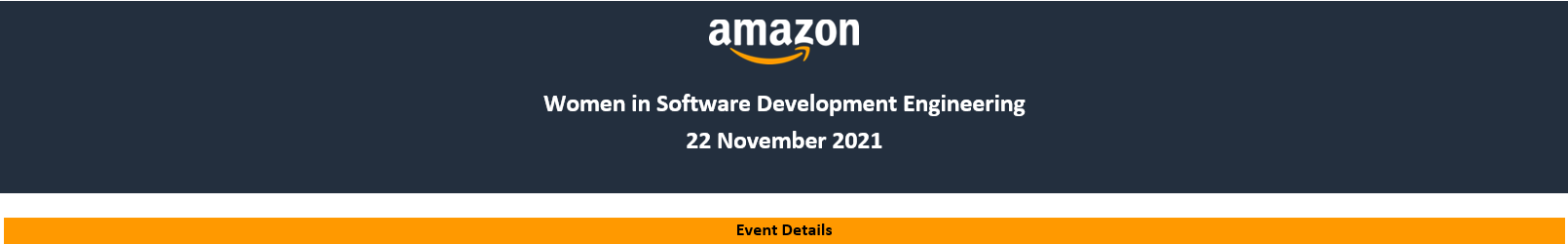 Amazon will be hosting a Women in Software Development Engineering (SDE) Event on the Monday, 22 November 2021, 12:00-13:00 GMT. At this event you will be able to gain a better understanding of the peculiar culture at Amazon, hear from some of our Women Software Development Engineers about their experiences of working in the technology field and find out more about the day to day of a software developer. You will also be able to take part in a live Q&A with the panellists, where we will be able to answer all of your questions about Amazon, the roles available and the culture. Finally, you will have the opportunity to take part in a CV and interview hints and tips workshop. This event is open to all students currently studying a technology focused degree at university and who are in their penultimate year of study or graduating in 2022.