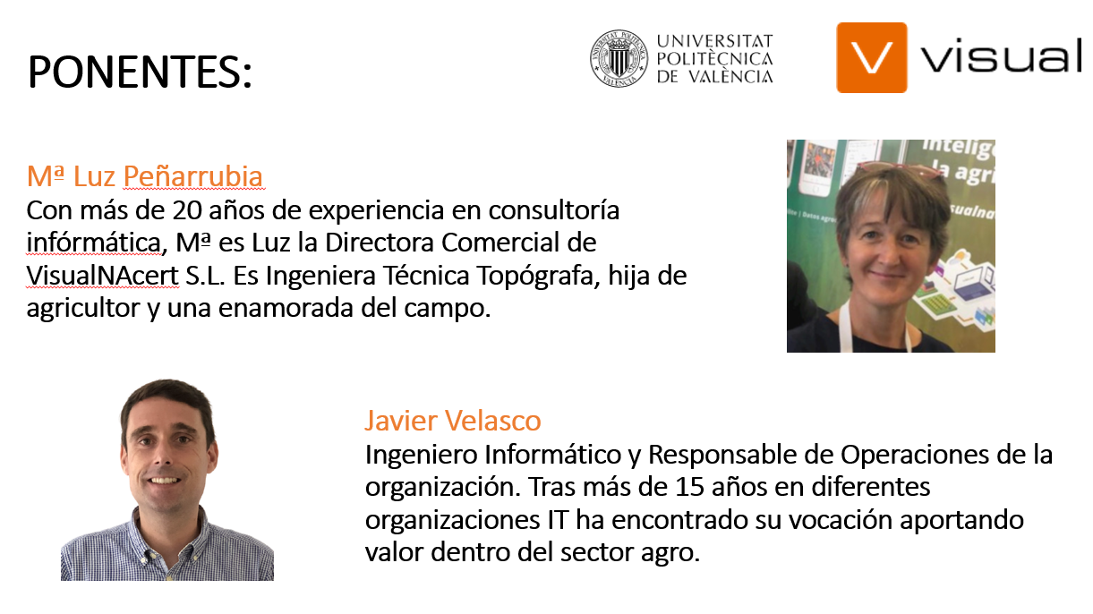 El próximo jueves 11 de noviembre en el salón de actos de la ETSINF a las 12:30, la empresa VisualNAcert, imparte la charla: «Beneficios de la ingeniería y las soluciones IT en el sector agro».