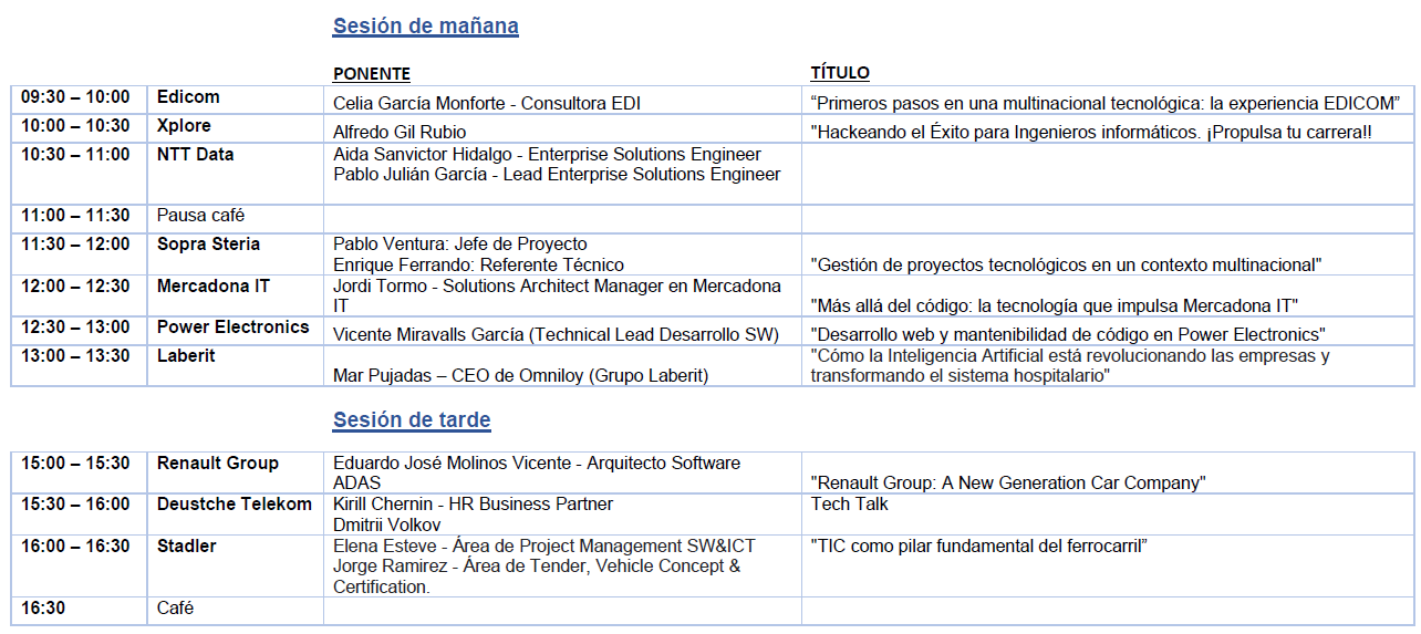 La ETSINF organiza la jornada ETSINF@TECH 2025. En este evento, empresas importantes del sector de las TI presentan tecnologías y metodologías punteras que utilizan a la hora de desarrollar sus proyectos.